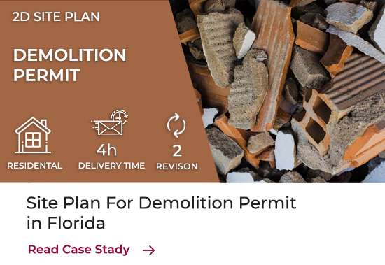 Since a professionally drawn site plan is necessary for obtaining a demolition permit, let us help you. Our team of experts has been creating site plans for permits for over 20 years. You can have a site plan in 24 hours and start the application process as soon as possible. If you have any additional questions, contact us.